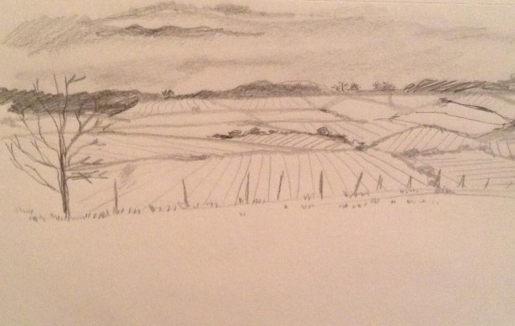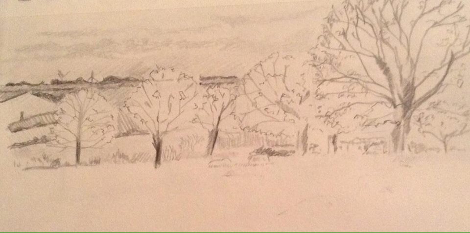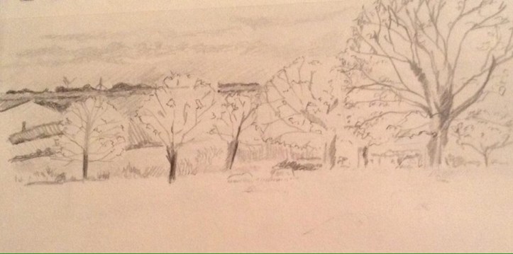 What was it like? It was very cold, but the huge of the countryside and sky was lovely – so dramatic! It’s a great place to watch the light and weather. It was lovely to follow the drawing with a cop of coffee in the warm.