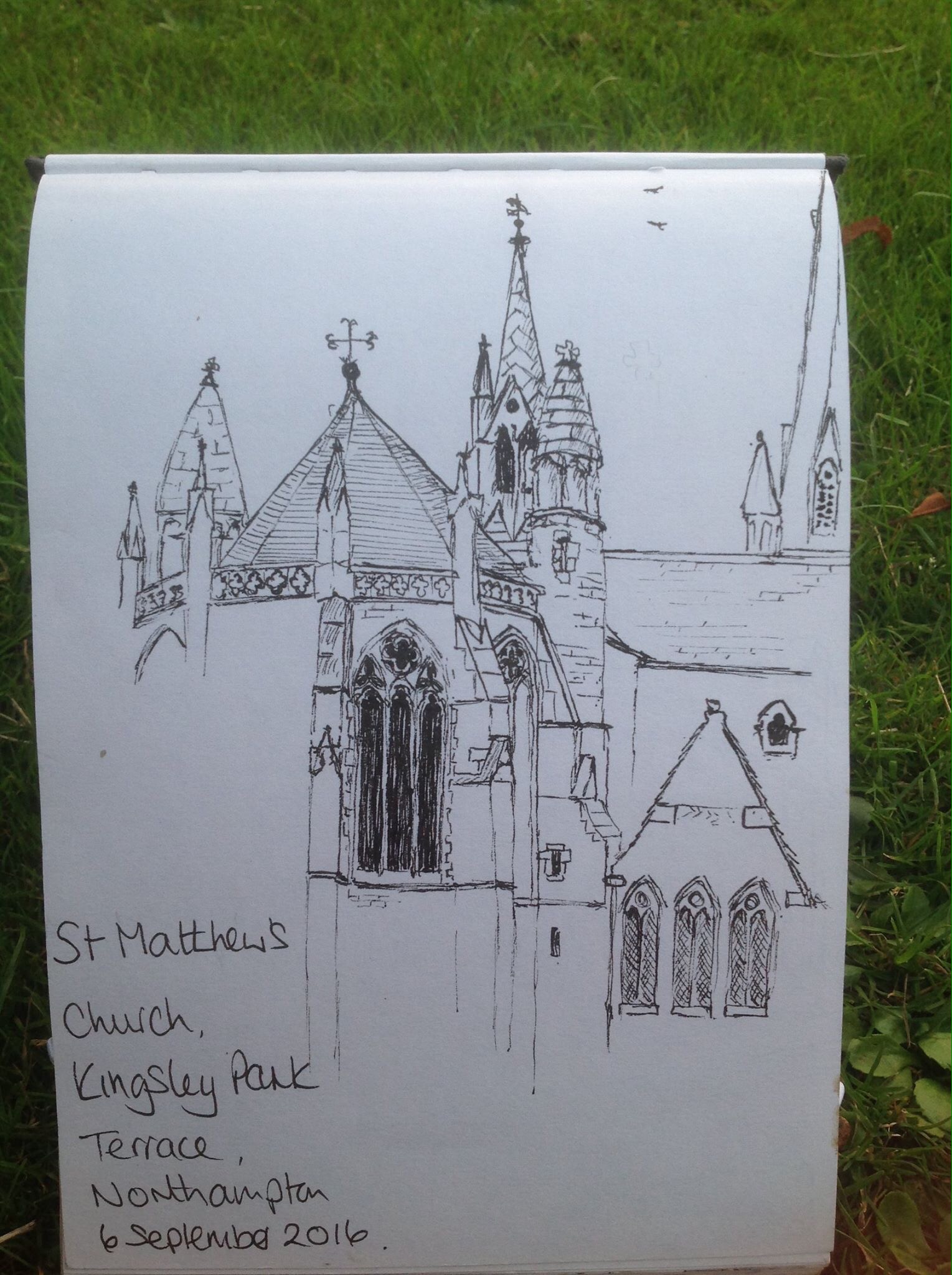 September 6, 2016September 6, 2016jeandrawingaday Tuesday 6th September Where did we go? St Matthew’s Church, Northampton Who went? Jane, Jean, Jo, Kathy, Lorraine, Minnie, Willy What was it like? It was warm and the sky clean to clear of the clouds that had been around all day. The sunset was amazing! Share this: Email a link to a friend (Opens in new window) Email Share on X (Opens in new window) X Share on Facebook (Opens in new window) Facebook Share on Pocket (Opens in new window) Pocket Share on Pinterest (Opens in new window) Pinterest Print (Opens in new window) Print Like Loading...