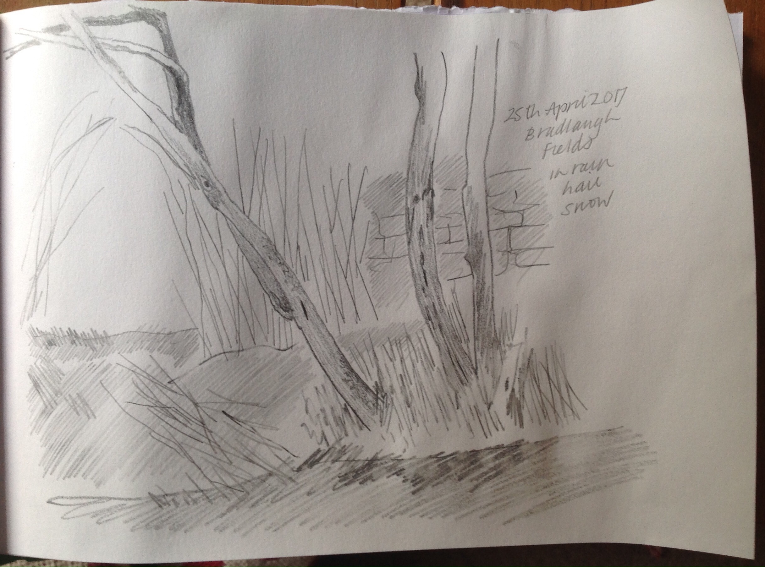 May 13, 2017May 14, 2017jeandrawingaday Tuesday 25th April Where did we go? Bradlaugh Fields Who came? Jean and Ruchira What was it like? It was cold and rainy and as we started drawing it began to hail heavily so the drawing was cut short! Share this: Email a link to a friend (Opens in new window) Email Share on X (Opens in new window) X Share on Facebook (Opens in new window) Facebook Share on Pinterest (Opens in new window) Pinterest Print (Opens in new window) Print Like Loading...