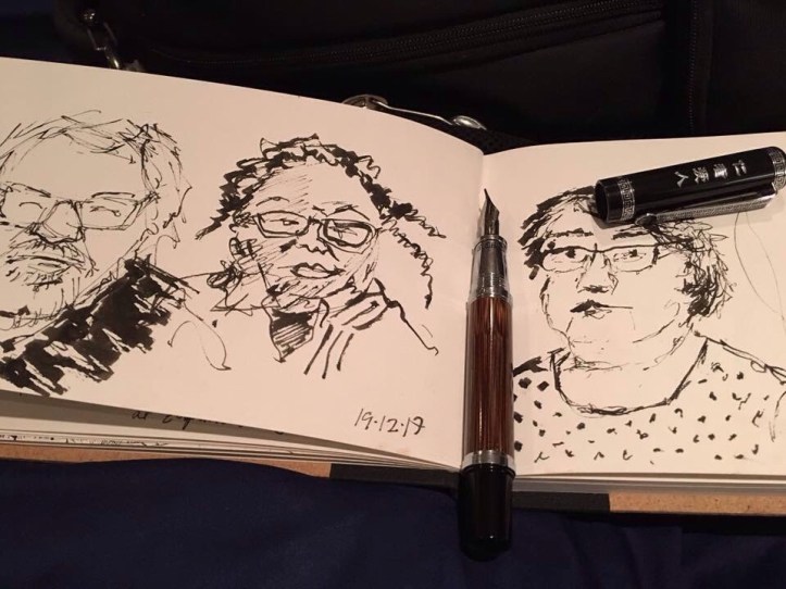 Anne brought her wonderful new pen and let us all have a go as we passed her sketchbook around.