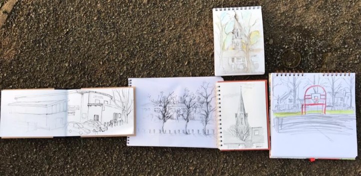 What was it like? Although it was dry with some sun it was also very cold in the wind! We stayed out to sketch but after 45 minutes retreated to the pub.