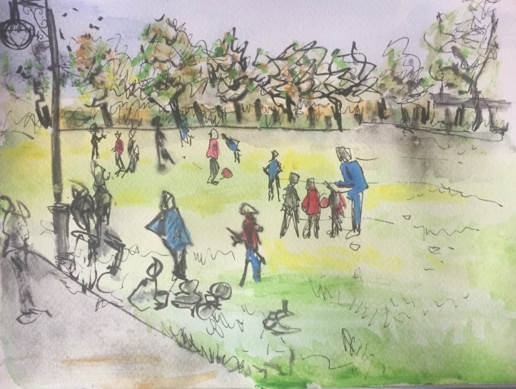 What was it like? It was bustling with runners, dog walkers, people going to fair, children and parents at the playground and people playing bowls. At first we were glad it wasn’t raining but it was extremely cold!