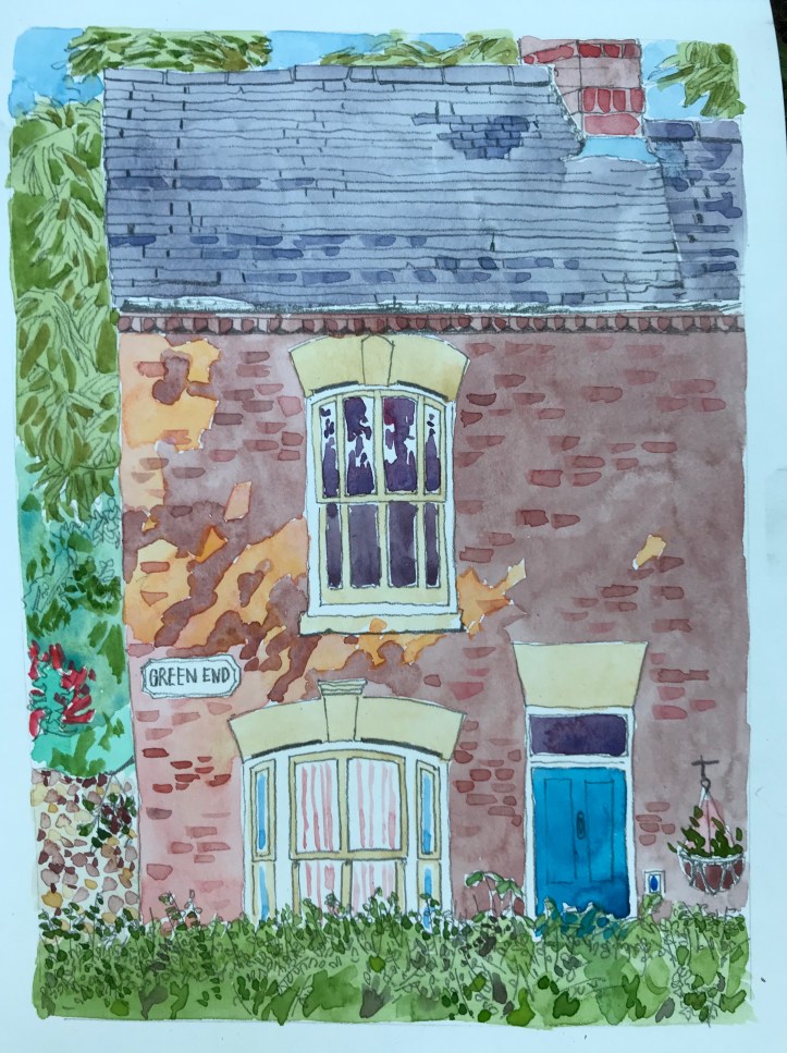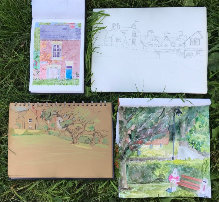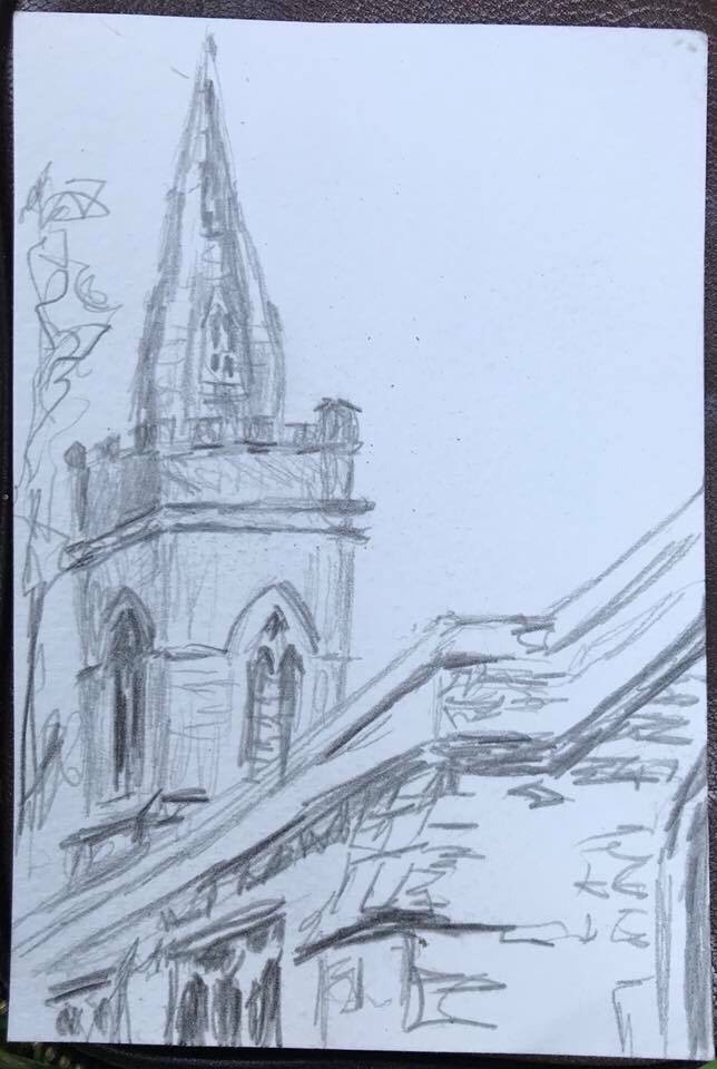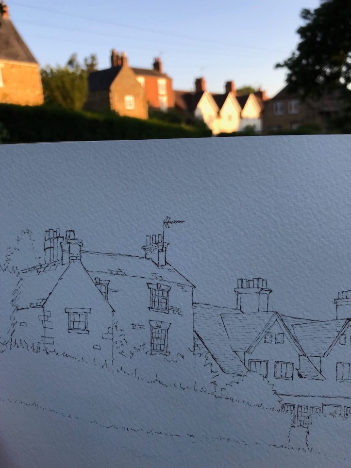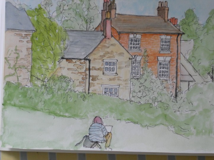 What was it like? Sometimes when we go urbansketching although the day as been cloudy the evening is sunny – this was one of those evenings. The sky cleared to a brilliant blue and the light on the buildings was lovely.