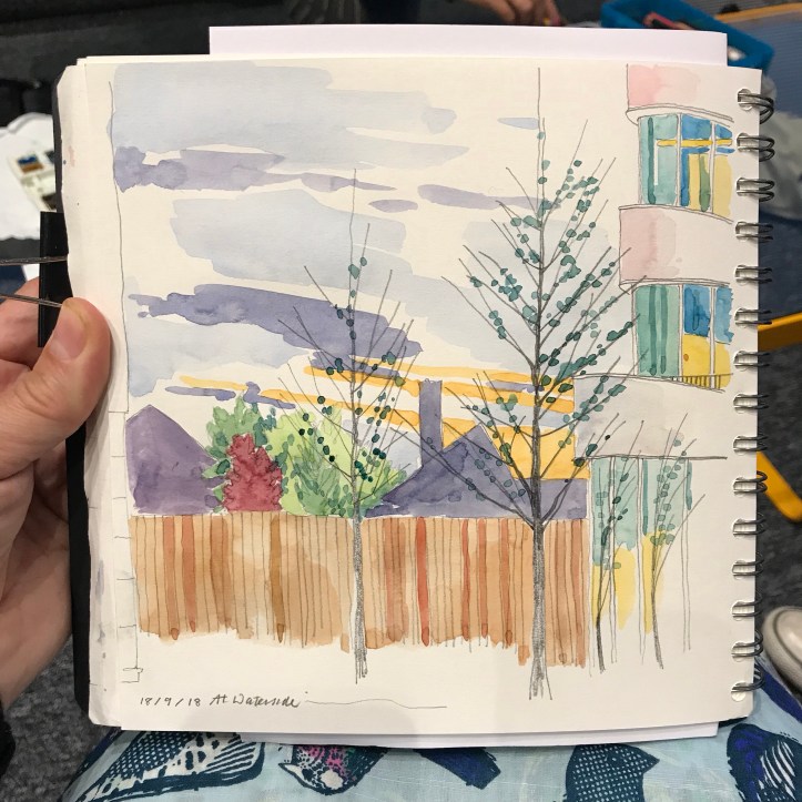What was it like? The floor to ceiling windows in the Learning Hub gave a great view. It would a good place to be to sketch at night and in poor weather.