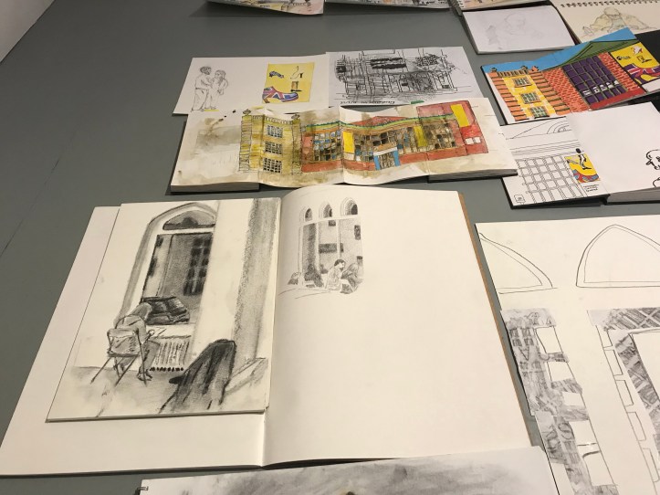 What was it like? The gallery is in such a great location for urbansketching. There’s lots to see in the street and great windows to look out of. It’s brilliant to see the varied approaches from the sketchers this evening!