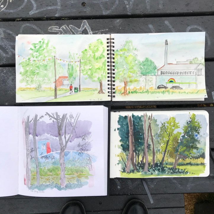 What was it like? Although it was a bit dull the sun came out as we sketched. We were lucky to have tables to sit at!