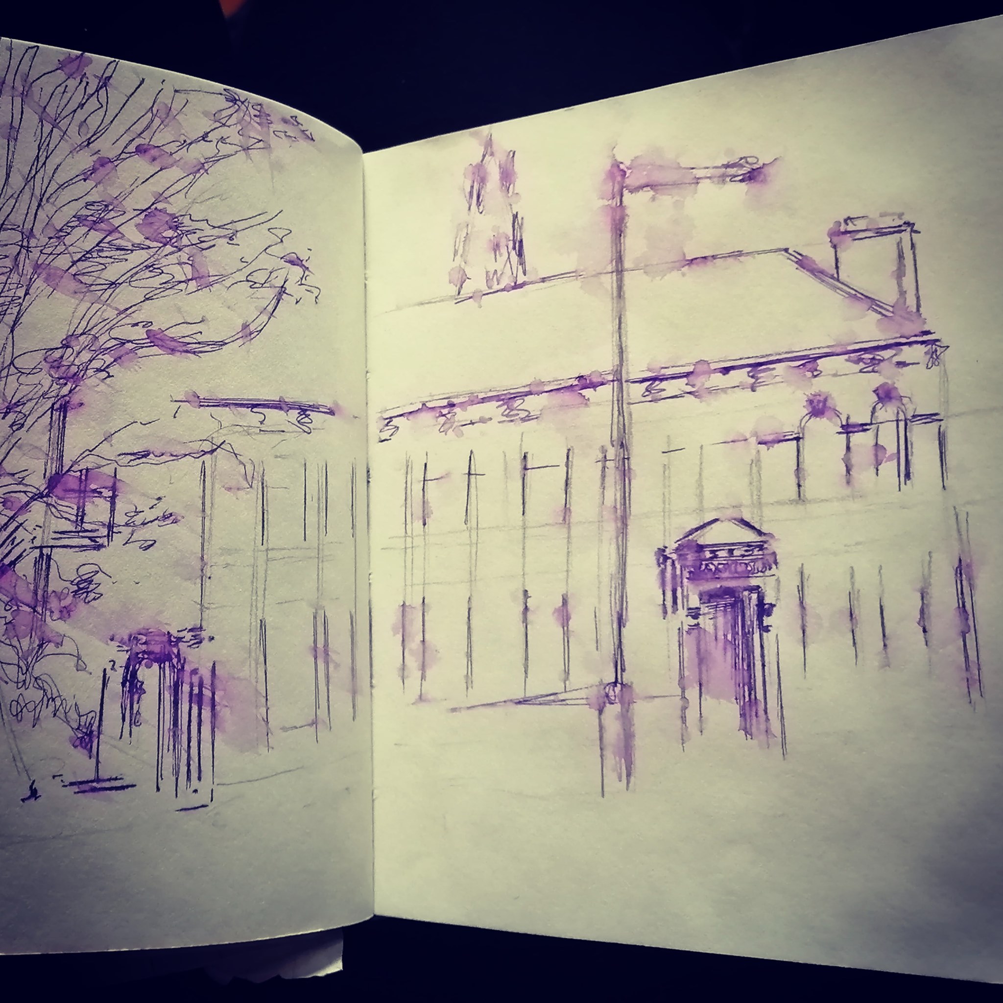 What was it like? It was threatening rain and then it did begin to pour! We managed to get some sketching done first though.