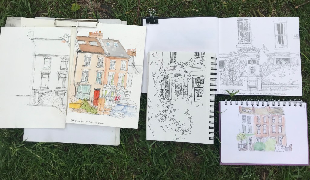 July 11, 2021July 11, 2021jeandrawingaday Friday 11th June Where did we go? St George’s Avenue, Barrack Road end Who came? Jean, Kath, Heather, Minnie What was it like? We hadn’t finished on Tuesday so we came back on on Friday afternoon, not quite so warm and sunny this time, but OK. Share this: Email a link to a friend (Opens in new window) Email Share on X (Opens in new window) X Share on Facebook (Opens in new window) Facebook Share on Pocket (Opens in new window) Pocket Share on Pinterest (Opens in new window) Pinterest Print (Opens in new window) Print Like Loading...