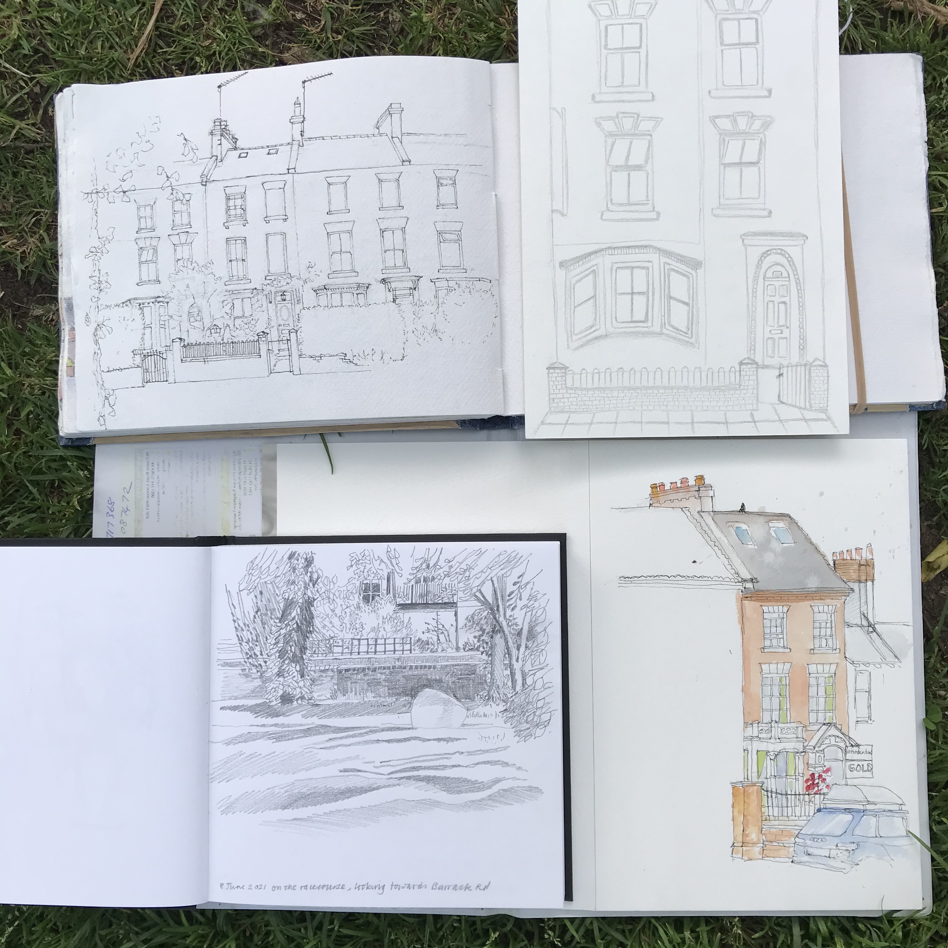 What was it like? It had been a lovely warm day and it was great to be sitting in the warm sun in the evening sketching. There was a nice atmosphere on the Racecourse, with people walking, running and playing games.