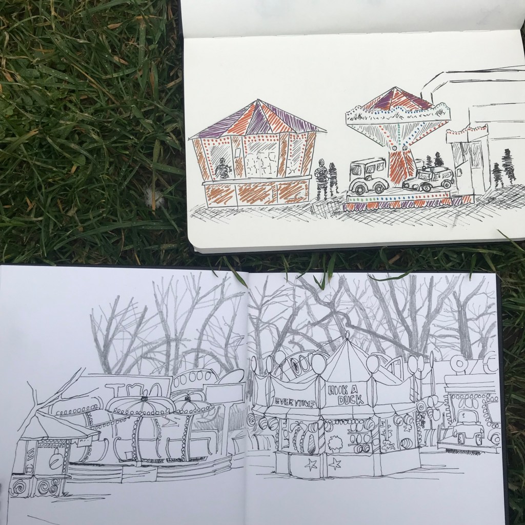 What was it like? Quite chilly and damp after a dull, rainy afternoon but the bright colours and lights of the fair cheered things up.