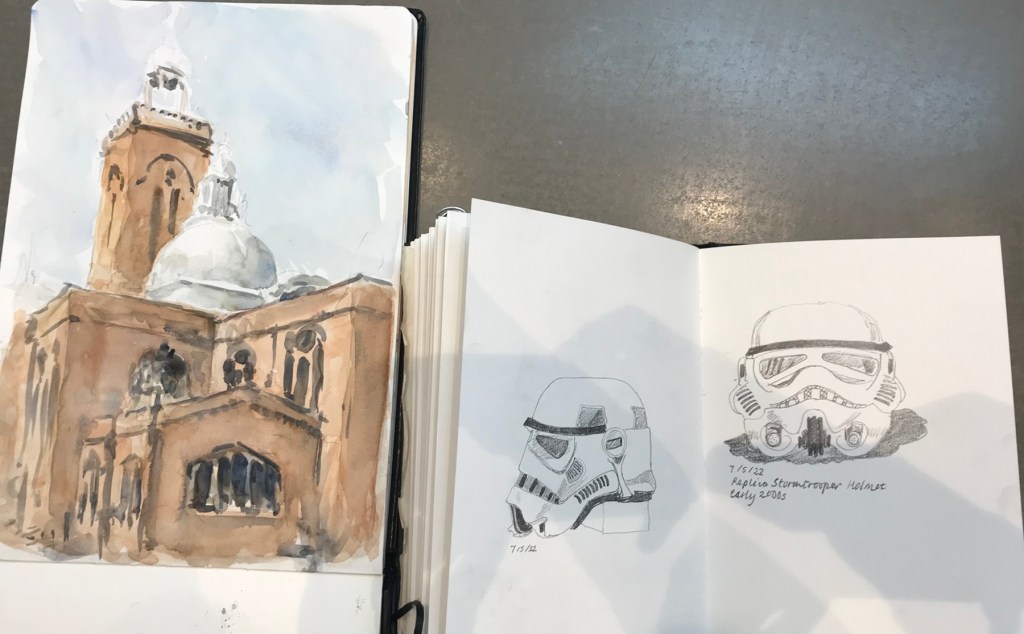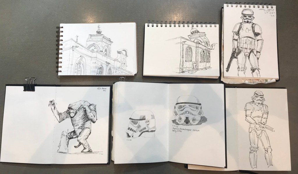 What was it like? It was very busy in the Star Wars exhibition with great excitement because there were four Star Wars visitors including Stormtroopers. We got a positive comment about our sketches from one of them!