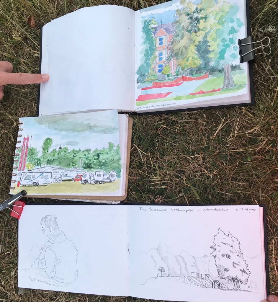 What was it like? The new paint on the basketball courts is so striking and vivid! The fair for the town festival was setting up too, so lots to look at and sketch.