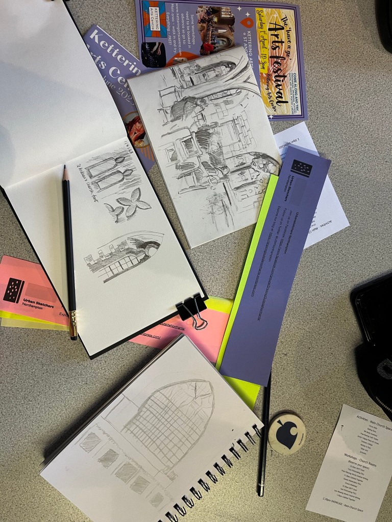 March 4, 2023April 3, 2023jeandrawingaday 1st April at Kettering Arts Centre Where did we go? The have a go arts day at Kettering Arts Centre Who came? Jean, Jane, Minnie, Lenka and Caitlin What was it like? It wasn’t an ideal day for sketching outdoors but we sketched indoors and enjoyed the activities and atmosphere! Share this: Email a link to a friend (Opens in new window) Email Share on X (Opens in new window) X Share on Facebook (Opens in new window) Facebook Share on Pocket (Opens in new window) Pocket Share on Pinterest (Opens in new window) Pinterest Print (Opens in new window) Print Like Loading...