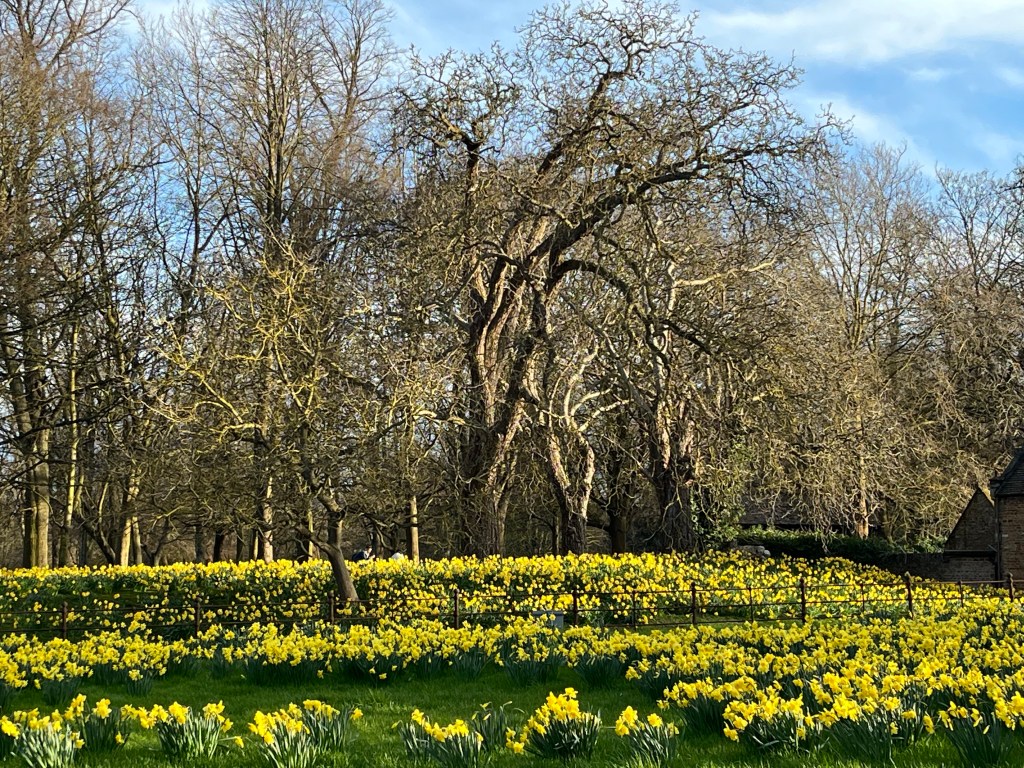 What was it like? A sunny and bright evening, Sadly most of the daffodils have died now but the early spring trees and evening light were lovely.