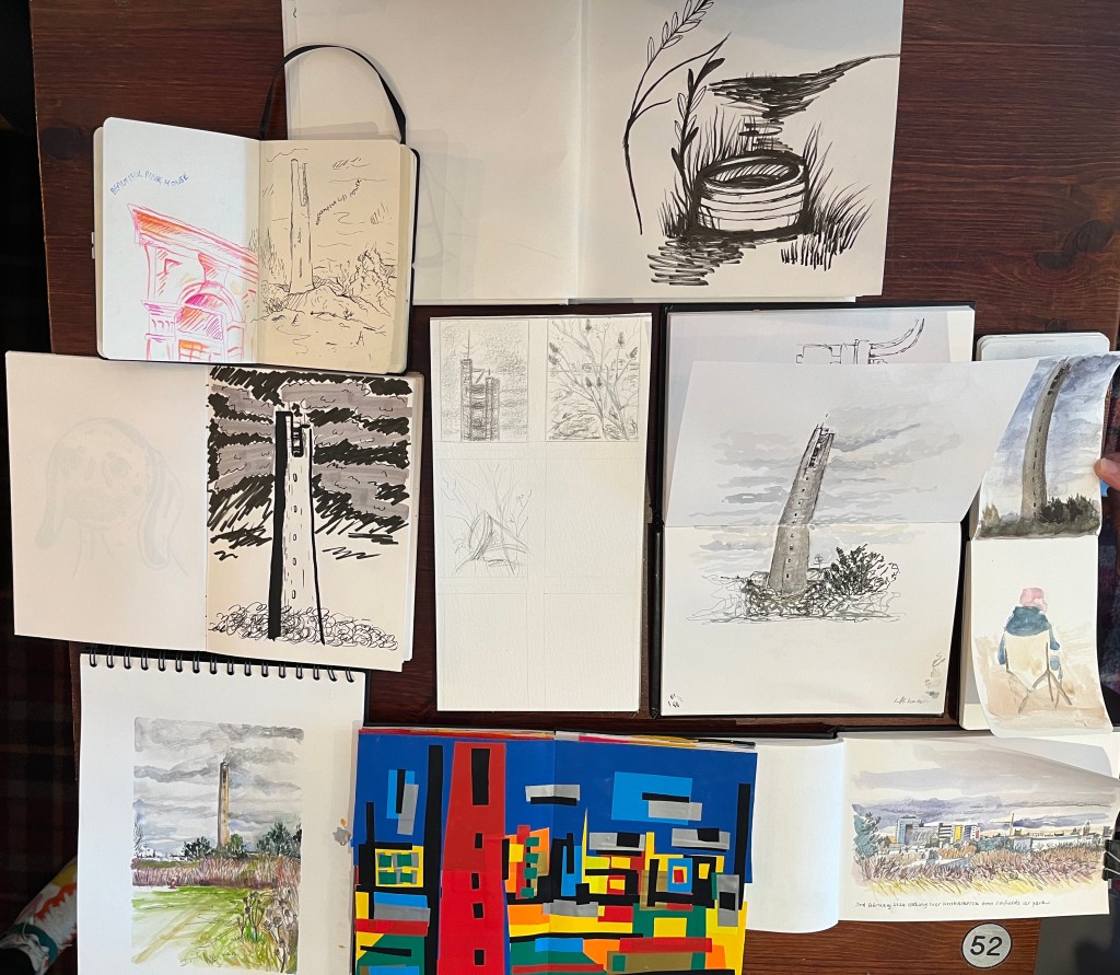 What was it like? It was quite blustery but OK to be outside to sketch. Its lovely to have a view over the town.
