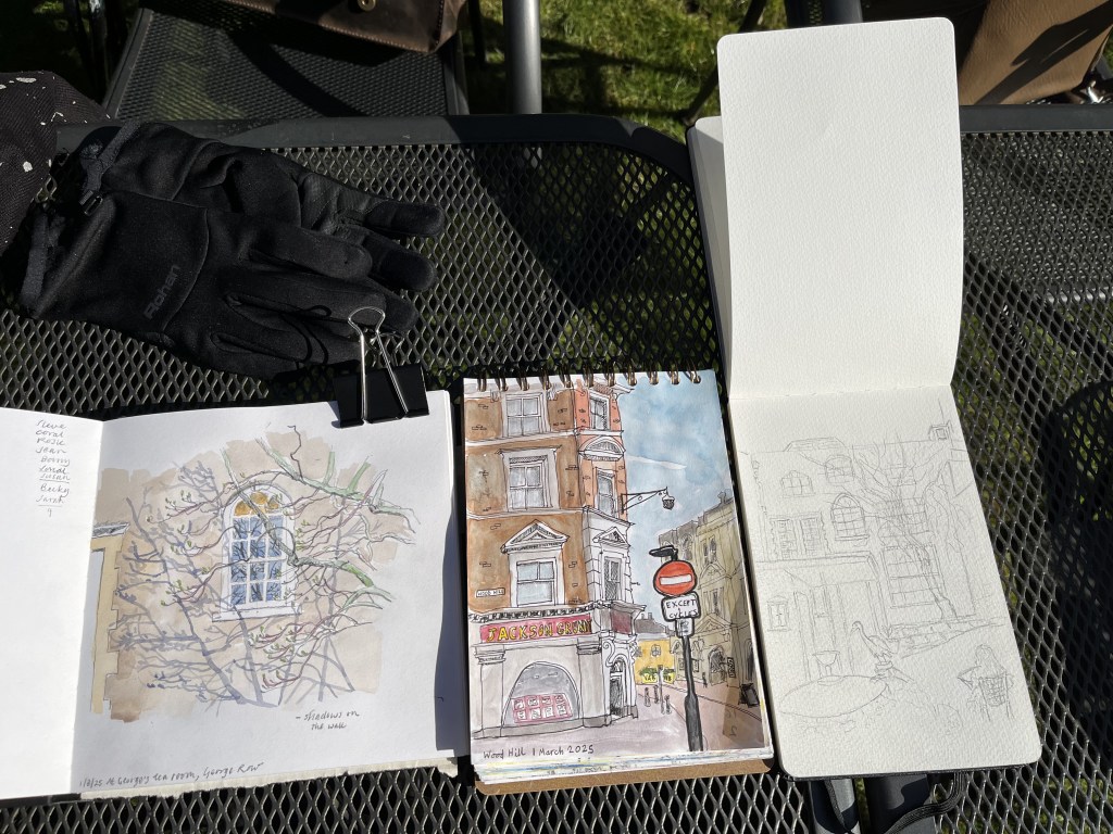 What was it like? Its a great location for sketching – a lovely outdoor space, a nice cafe and a good base from which to sketch in the town centre.