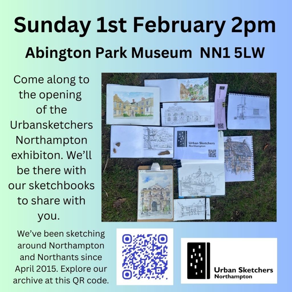 It would be great if as many urbansketchers past and present could come along with their sketchbook to the opening of our exhibition at Abington Park Museum on Sunday 1st February from 2pm. This will be an opportunity for those of you exhibiting to bring your friends and family. Also those of you who have sketches that couldn’t be framed can bring them along to share.